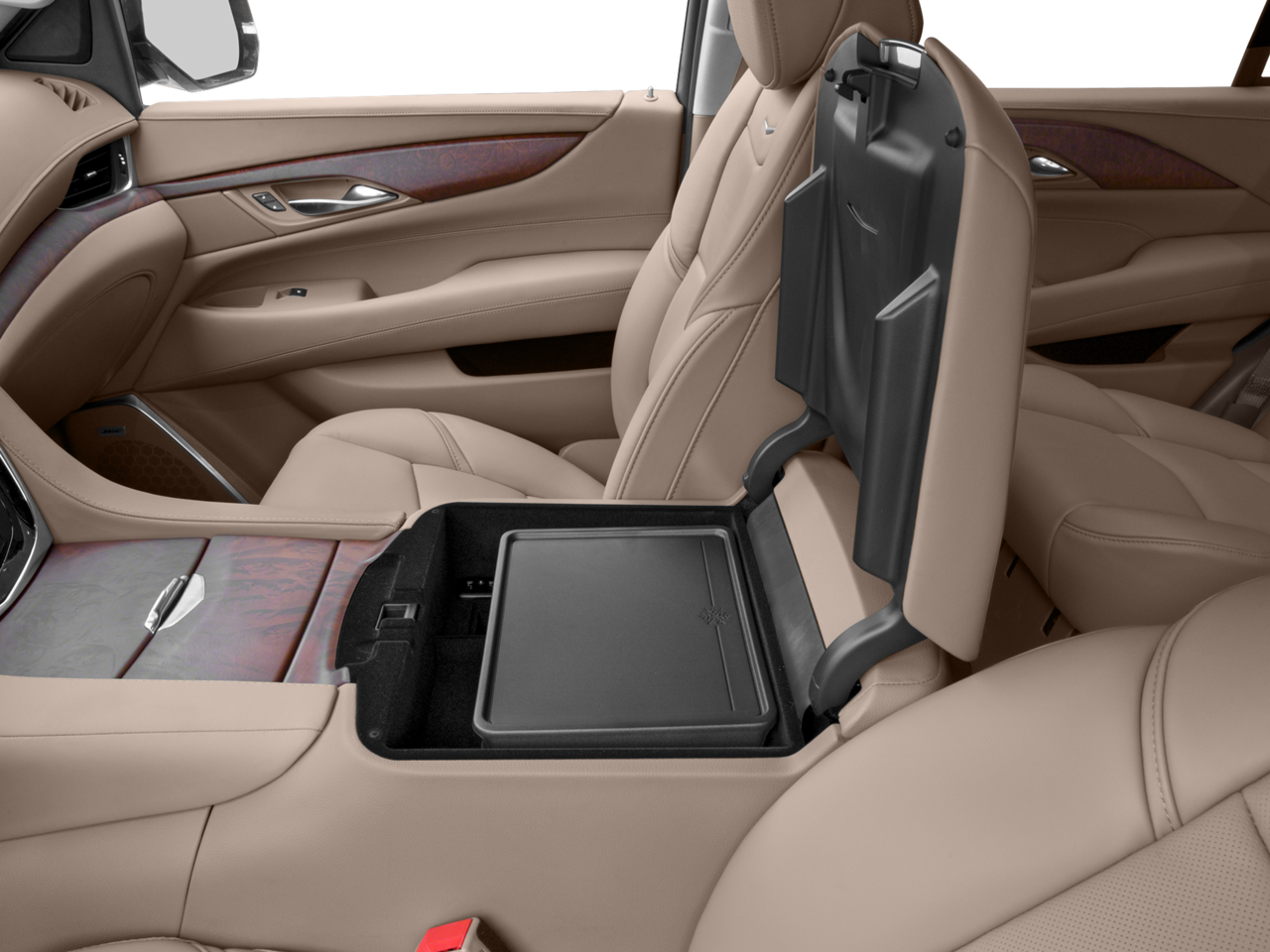 - Console, cooled with covered storage, large and small storage bins, dual cup holders, electronic climate controls and second row heated seat controls (inside console: auxiliary power outlet, two USB ports and auxiliary audio port), 110-volt outlet and auxiliary power outlet on the backside of console